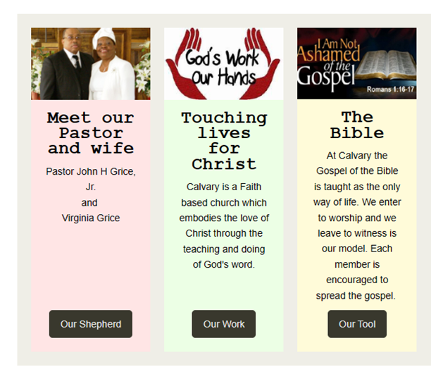 Calvary is a non-profit, religious organization that provides outreach to the community.
